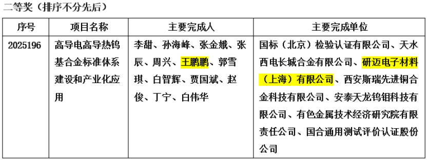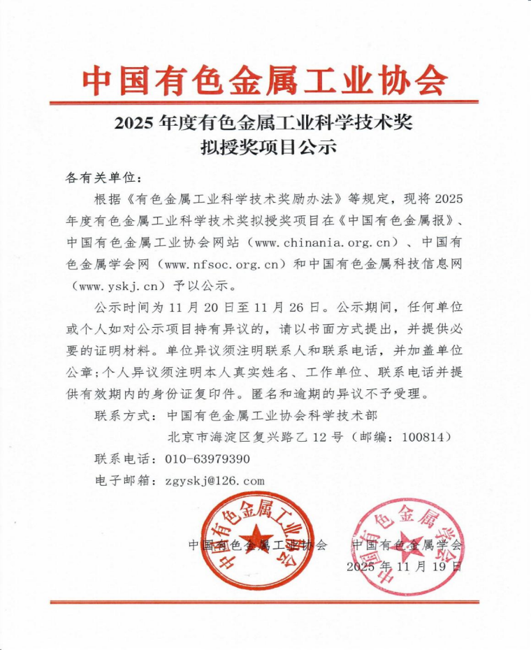 2025年11月 研迈电子获有色金属工业科学技术奖二等奖