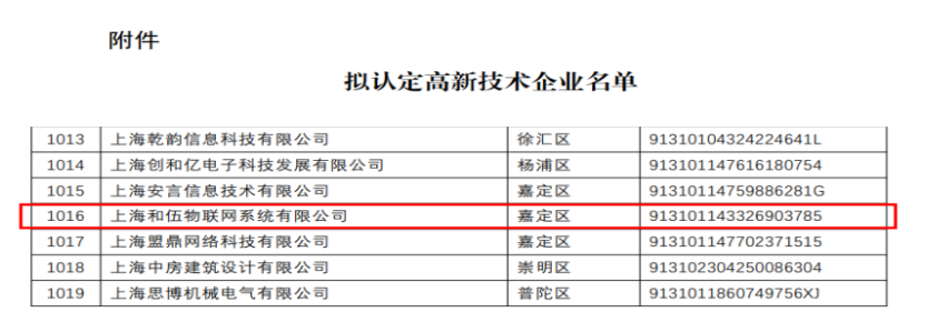 2025年12月 和伍物联网通过高新技术企业重新认定